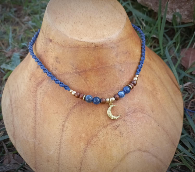 Collier fin « petite lune » ~ Coloris & pierre au choix